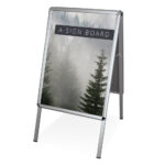Marke: Ultima DisplaysPoids: 10.00 kg Chevalet porte-affiches, Chevalet publicitaire, Panneau publicitaire, Panneau d’affichage, Panneau Trottoir, Stop Trottoir avec pied réservoir. Un chevalet recto-verso résistant et stable pour véhiculer vos messages Caractéristiques Cadre clippant recto-verso en aluminium Chevalet stop-trottoir en acier galvanisé Charnière en métal Convient pour une utilisation en intérieur ou en extérieurLes + Produit Changement de visuel par l’avant simple et rapide (cadre clippant) Protection PVC transparente pour le visuel 4 formats disponibles : B1, B0, A1 et A0 Communication recto-versoMédia recommandé • PVC ou papier encapsulé de 1mm d’épaisseur A SIGN BOARD – A1 831 x 584 A SIGN BOARD – B1 990 x 697 A SIGN BOARD – A0 1173 x 825 A SIGN BOARD – B0 1404 x 990