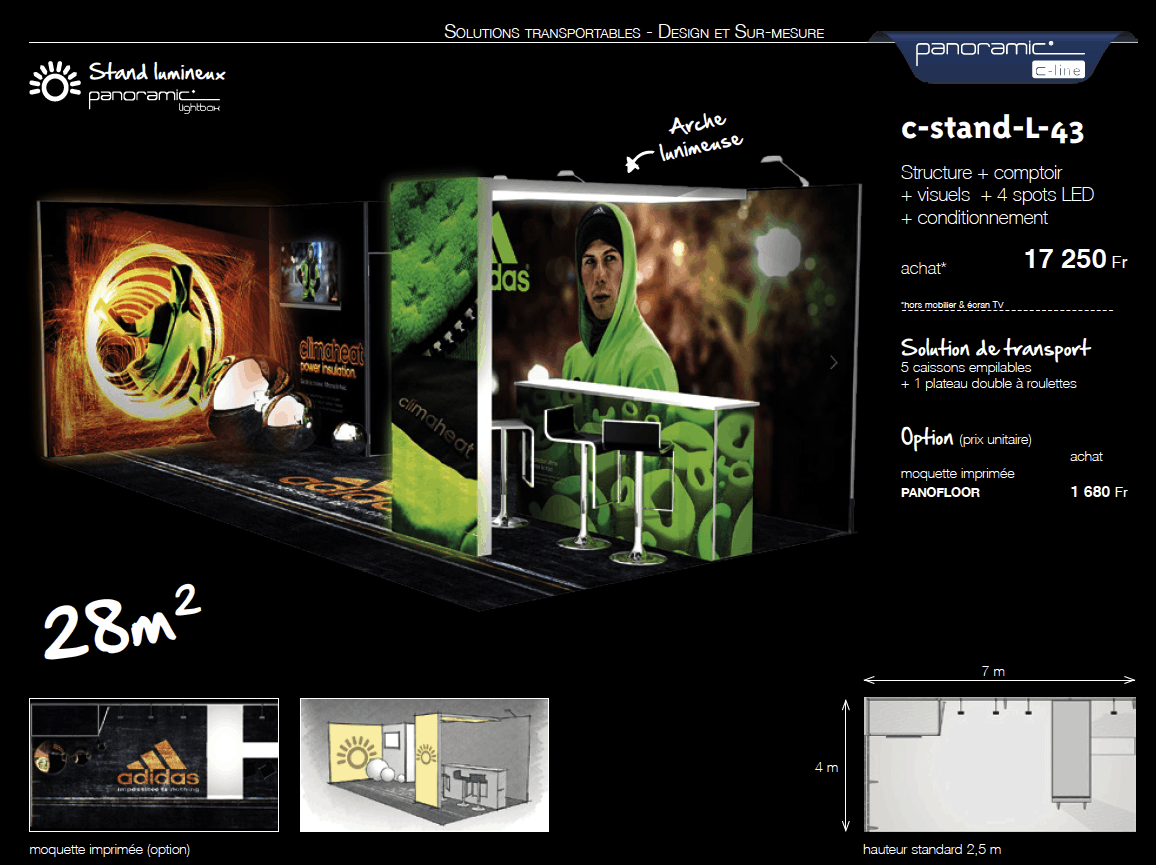 Structure + visuels + 4 spots LED + conditionnement