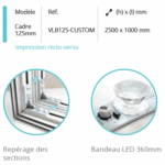 SKU : Cadre Lumineux tissu LED 125mm recto/verso - H250xL100cm Catégorie: