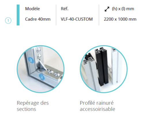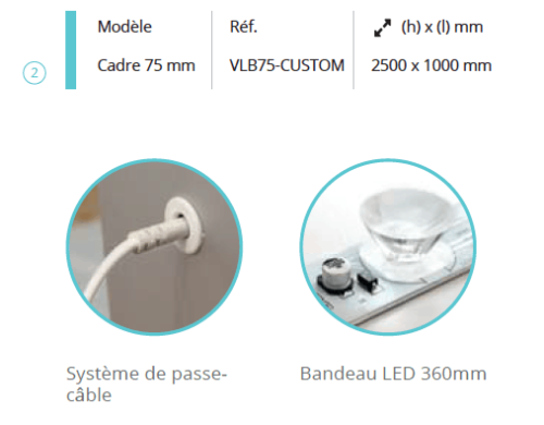 Cadre Lumineux tissu LED 75mm – H250xL100cm