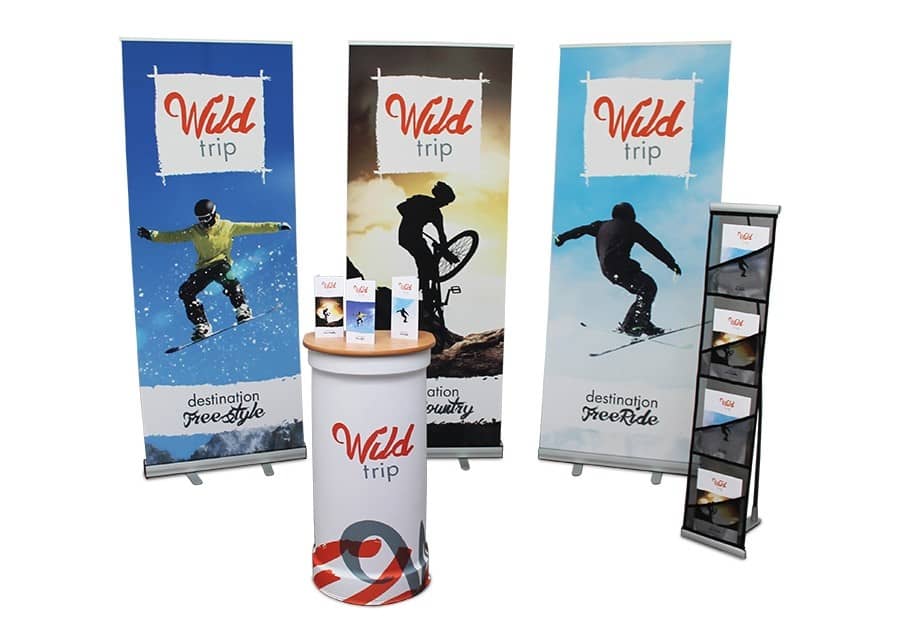 KIT SALON ÉCO – 3 ROLL UP + COMPTOIR